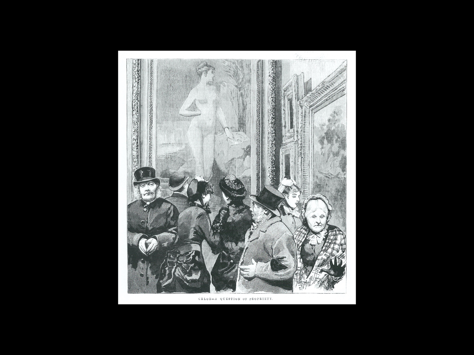 Now, in all sobriety, the French picture of Chloé is utterly deficient in true artistic feeling … It is a pretty girl naked, neither more nor less. She hangs in the gallery there in North-terrace not to attract people to love art, or to worship the ideal, but for them to admire herself. She is showing her charms to the world, and for a pretty girl to show herself in that indecent fashion is by no means proper.47