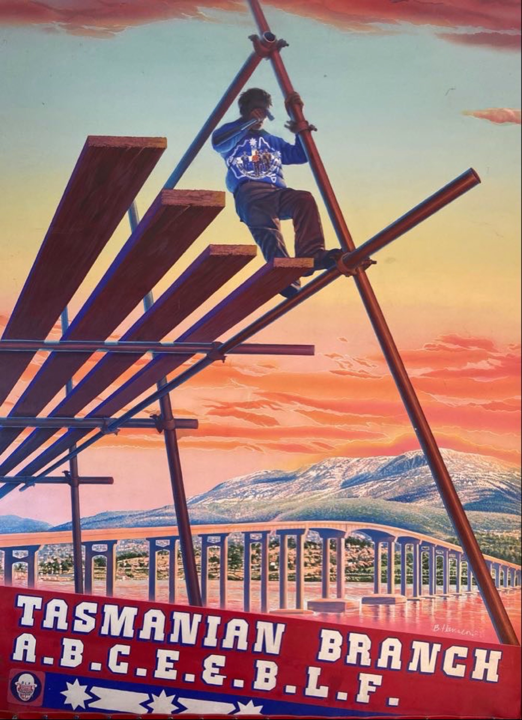Imagery, in many instances, is more immediately powerful and evocative than speech. The use of stickers by construction unions instantaneously communicates a complex political message through an icon. The union movement has always understood this power. From the beginnings of class-critique and worker consciousness in the nineteenth century, collective struggle has been portrayed through the symbols and iconography of labour. Union ideas have always emphasised the visual, originally out of necessity due to higher levels of illiteracy amongst workers but also in recognition of the intimate relationship between aesthetics and politics. Well aware of the aesthetic dominance of capital, unions sought to create alternate cultural structures: Working Men’s Colleges, labour media, musicals and exhibitions.58 In Australia in the 1930s and 1940s, social realism “sought to depict the struggles of society’s marginalised groups and the injustices of the capitalist system.”59 Artists Noel Counihan, Jack Maughan, and Nutter Buzacott formed the Worker’s Art Club in Melbourne in 1931, producing its own media, artworks, and hosting performances.60 During the early 1980s, the twilight of the conciliation and arbitration system, unions and government created the “Art and Working Life” program (AWL) to create public artworks relevant to working people. Some unions had cultural officers, and some trade halls levied affiliation fees to run arts programs.61 The four major building unions in the early 1990s employed a cultural officer, and their collective agreements required that building projects with a value of over $1 million spent one per cent of their value on commissioned Australian artworks to be displayed in the building.62 Images have long been essential to the collective cultural identity of unionism. Today’s stickers and posters are a direct link to this visual history.