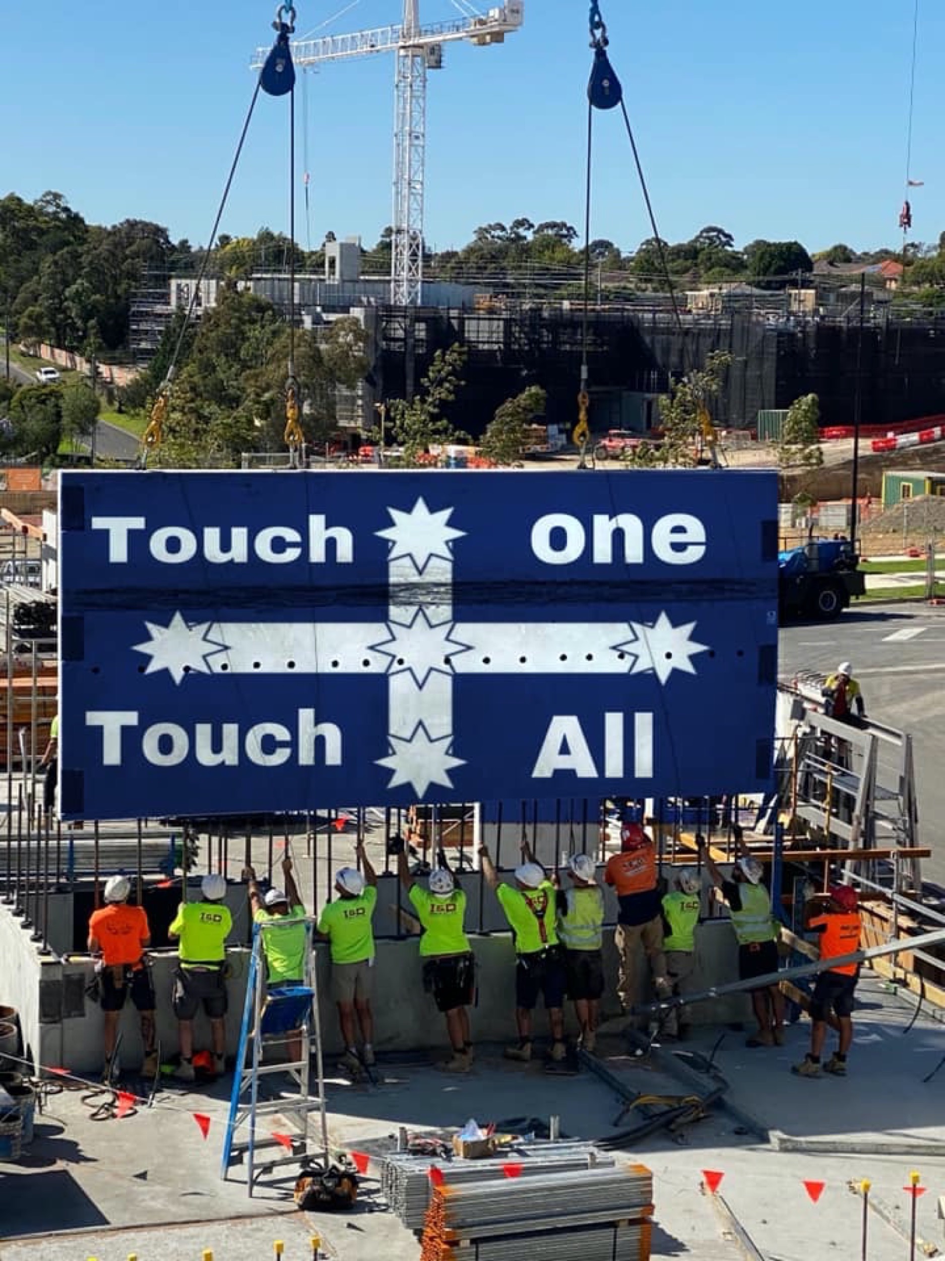 These interactions, and dozens of others like them, were meticulously documented by the inspectors as potential breaches of the Code. The documentation includes hundreds of photos, ranging from individual construction workers wearing hard hats covered in union stickers, to the Eureka Flag, flying high above the site, atop a crane.9 This matter is currently before the Federal Court of Australia, as the builder, multinational corporation Lendlease, has sought judicial review on the validity of aspects of the Code for the Tendering and Performance of Building Work 2016 (Code) that prohibit union insignia. For this multi-million-dollar project, high-powered legal teams pour over hundreds-of-pages of documents, filled with photos of union flags, posters, and stickers.
