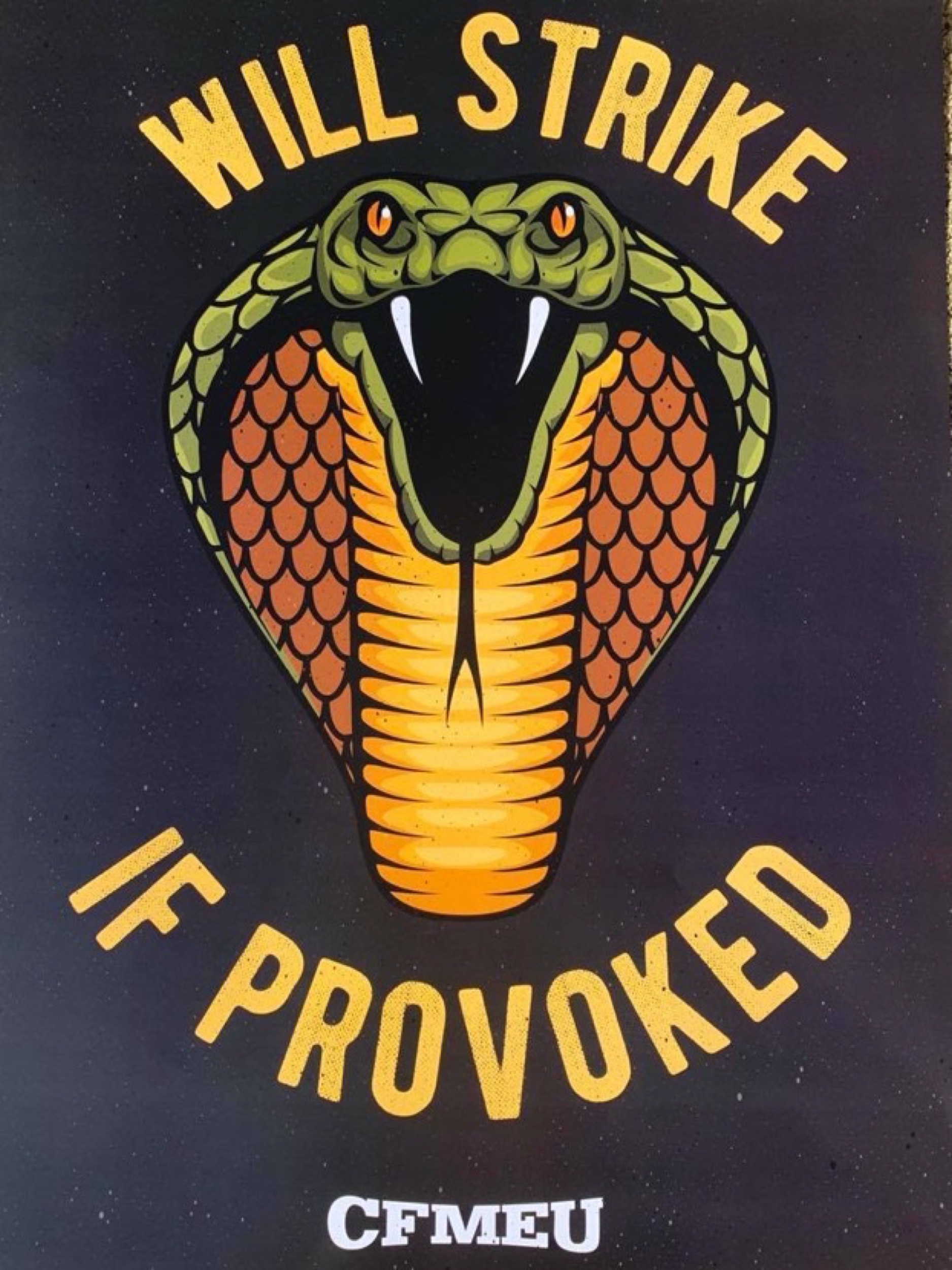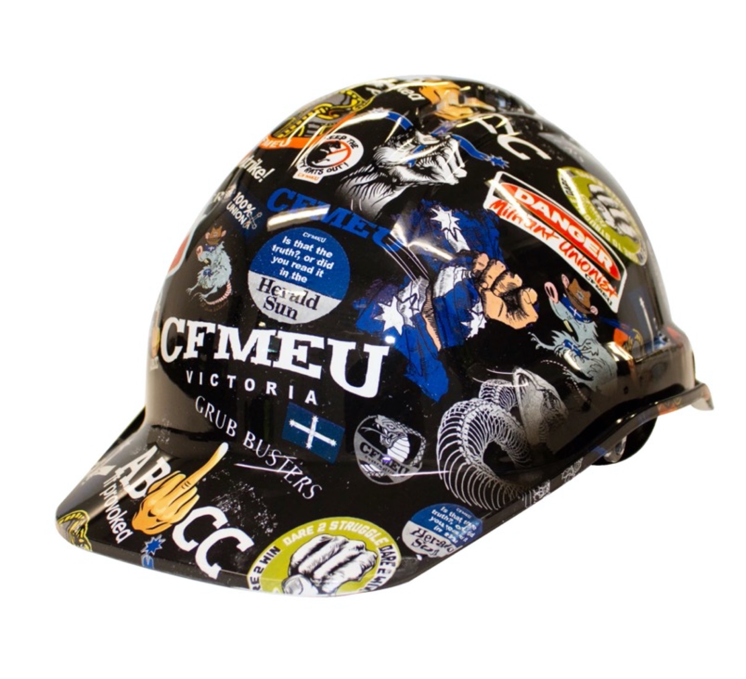 The Code implicitly recognises the importance of these images, noting the “iconic” nature of the Eureka flag, for example. Despite years of repression, these symbols remain prevalent on construction sites where union membership is relatively highly concentrated. Flying flags on cranes and wearing stickers on safety helmets is a common expression of support for trade unionism and solidarity. They are the visual manifestation of an ideological position. While the stickers often are accompanied by text, such as “100% Union,” “No Free-Loading,” or “No Ticket, No Start,” the images can pack an immediate and visceral punch—a striking cobra, a rat, a raised fist, or the skull-and-cross-bones.